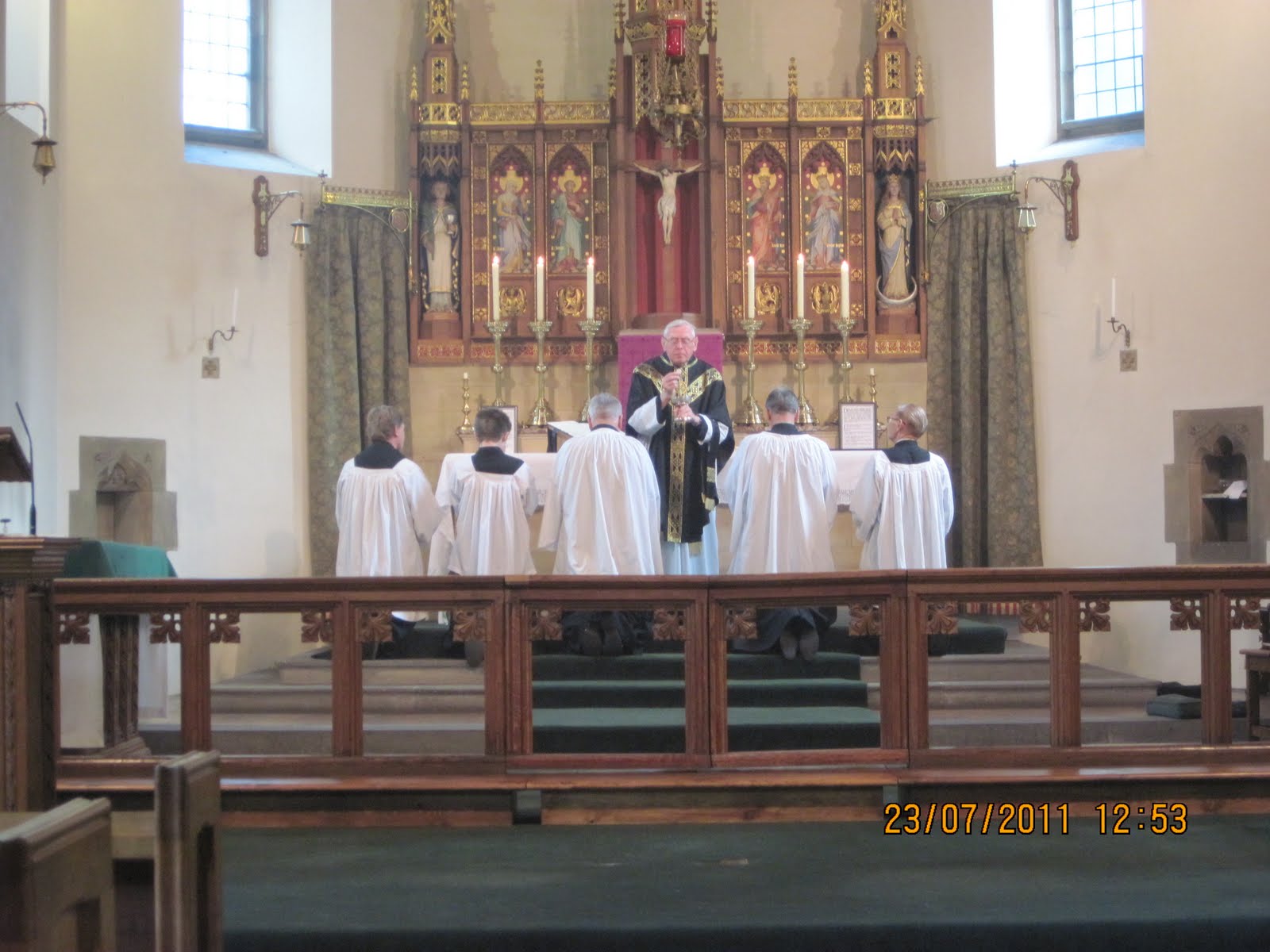 Afterwards tea and refreshments were served on the lawn. All the while the sun shone, until after the whole thing was over, there was a heavy shower. I have been musing on the following syllogism: The Bible says that the sun shines on the righteous; the sun shone on us; therefore we are righteous! Or is there something wrong with that logic? An undistributed middle, perhaps? Here are the photos of our Procession.
